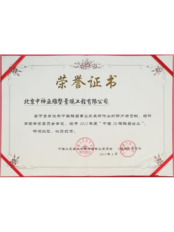 中神亞雕塑企業始建于1986年,(期前身為溫嶺藝術雕刻廠北京分廠)是設計和制作不銹鋼,鈦金屬,鍛銅,鑄銅,石刻等室內外雕塑的專業企業。是中央美術學院雕塑系和清華大學美術學院雕塑系實習創作基地,亦是中國美術家協會雕塑藝術委員會和中國工藝美術學會雕塑專業委員會特別推薦企業;是全國雕塑企業委員會副主任委員單位;是中國雕塑學會理事會員單位;2010年增選為中國建設文化藝術協會環(huán)境藝術專業委員會常務理事單位;2011年批準加入為中國建筑金屬結構協會會員,2012年增選為中國建筑金屬結構協會第十屆理事會理事單位;中國鋼結構協會團體會員;是具備住建部核準可承擔各種類型藝術鋼結構、藝術網架結構工程三級資質企業...